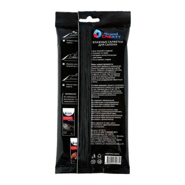 Влажные салфетки Grand Caratt для ухода за салоном автомобиля, 20 шт, 13×20 см